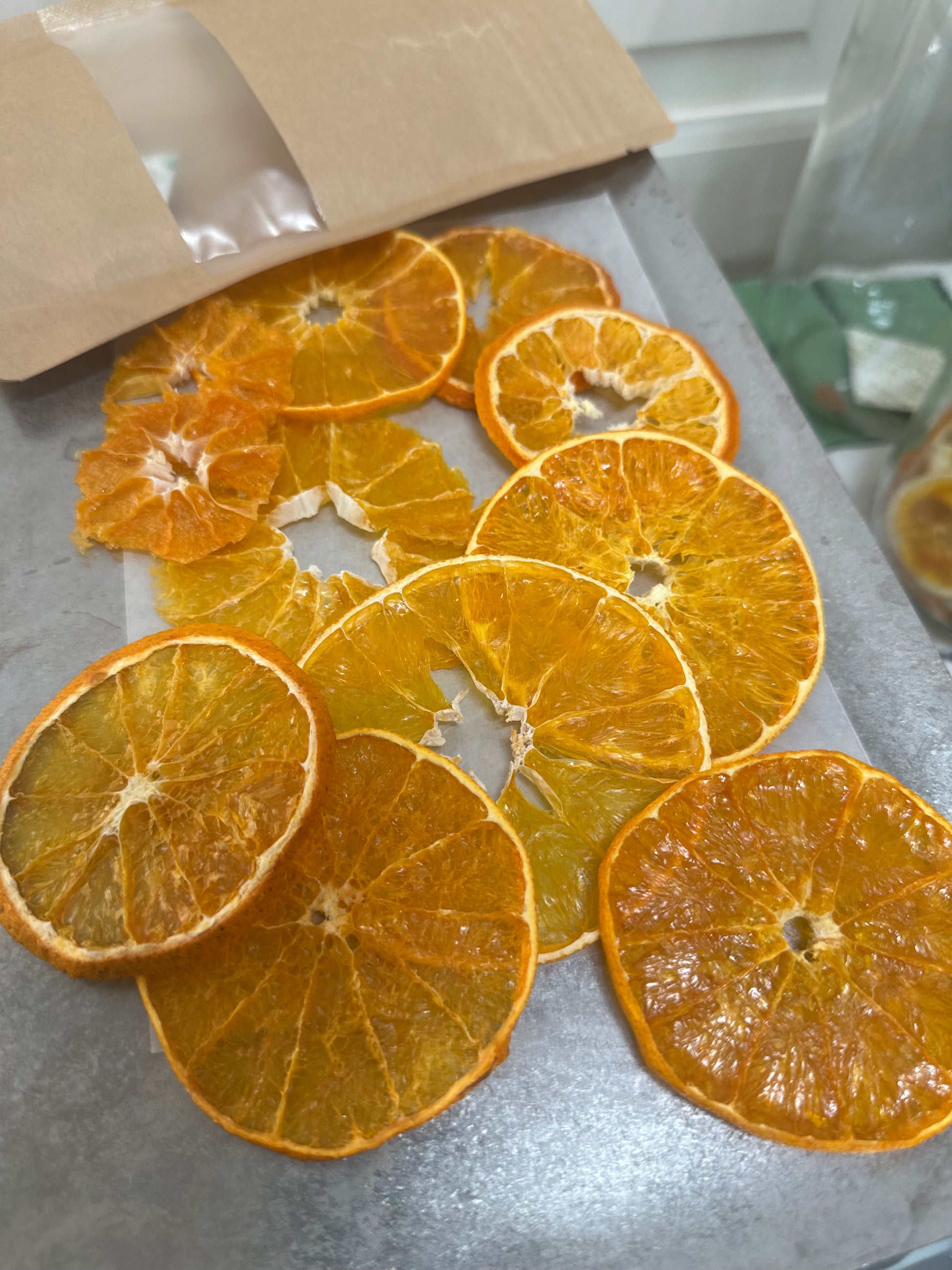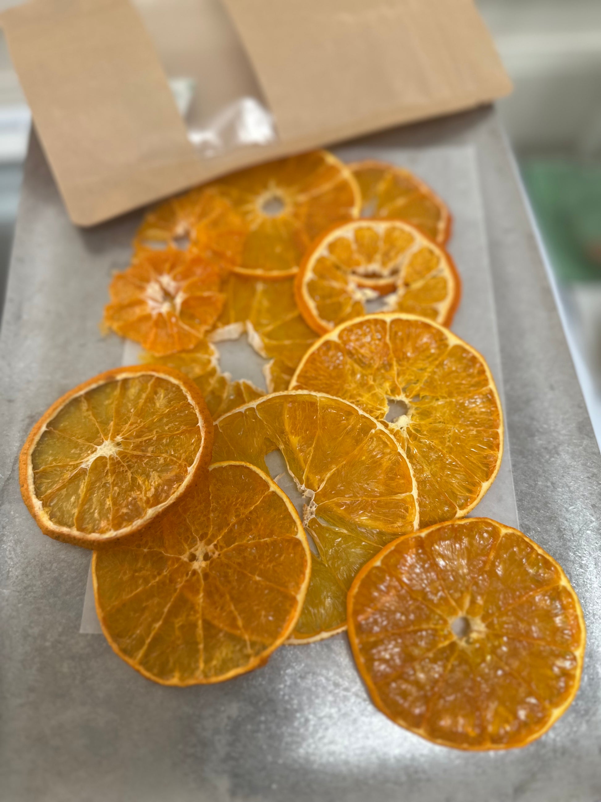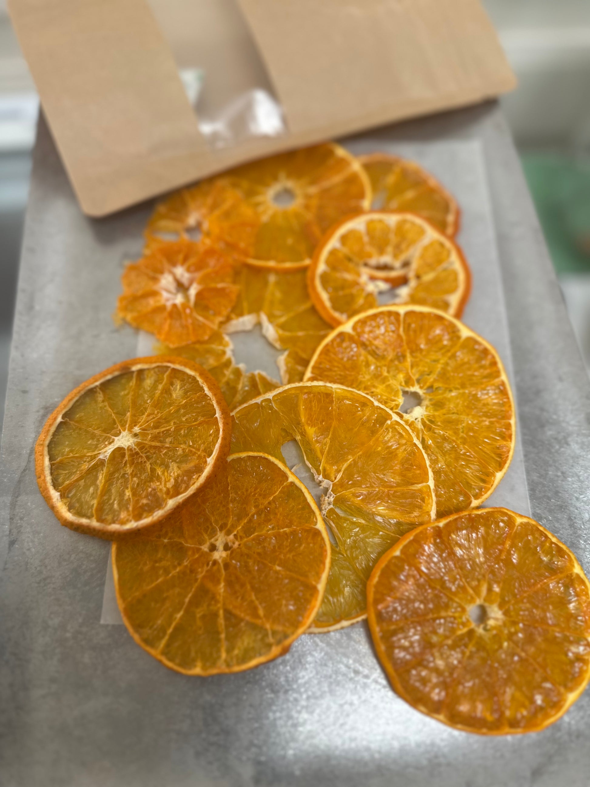 国産低農薬の季節の柑橘を薄くスライスして低温で数日かけて乾燥して詰めています。